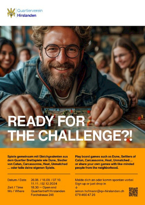 Spiel mit gleichgesinnten Brettspiel-Fans aus dem Quartier Brettspiele wie Dune, Siedler von Catan, Carcassonne, Heat, Unmatched, ... oder bring Deine eigenen Spiele mit. Play with likeminded board game fans from the neighborhood games like Dune, Settlers, Carcassonne, Heat, Unmatched, or bring your own board games.