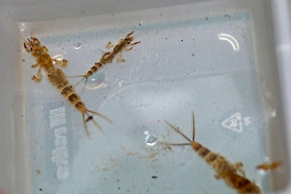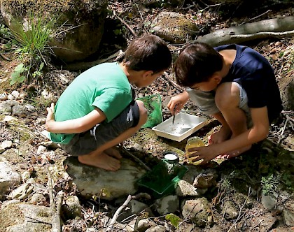 Die Gewässerbiologin Verena Lubini führte am Samstag, 20. Mai an eine Stelle am Wehrenbach, wo unter Anleitung Kleinlebewesen im Bach (unter den Steinen usw.) gesucht wurden. Eine Veranstaltung im Rahmen von «Abenteuer Stadtnatur»